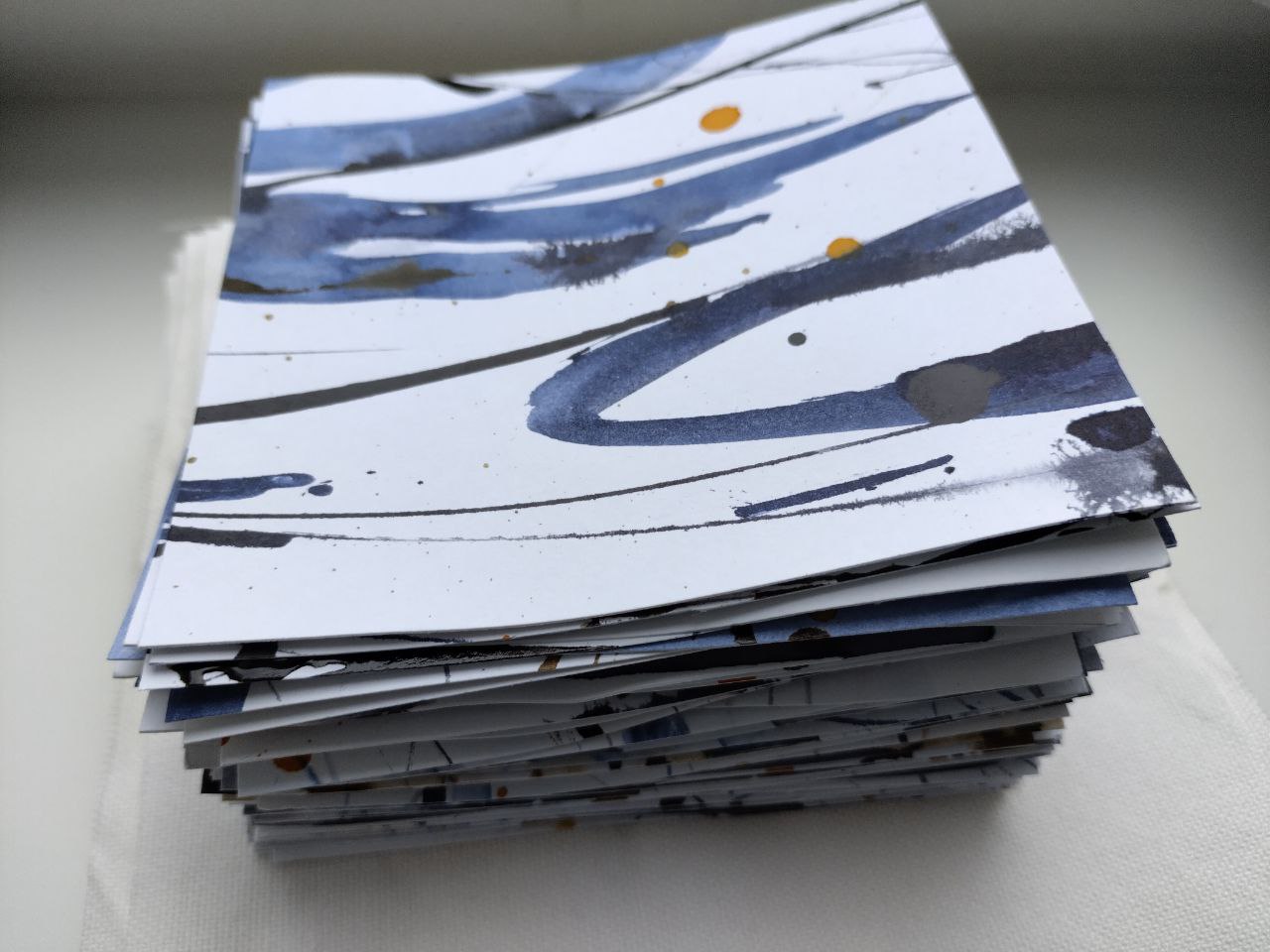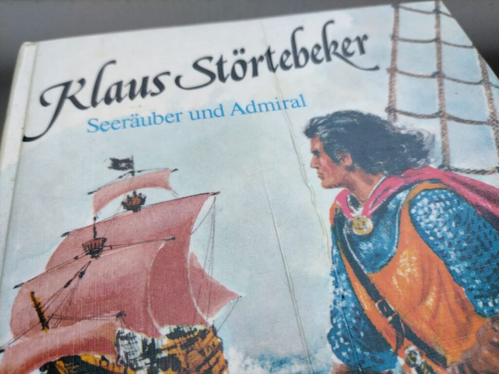 Eigentlich möchte ich gerne zweigleisig fahren: Auf 10 x 10 cm großen Papierstückchen wird sich ein kleiner Text zum jeweiligen Wochenthema einfinden. Da werde ich, wie üblich hier, ein poetry reduced “verworten”. Wer übrigens mal ein Tutorial dazu sucht, wird hier fündig. Da habe ich vor einigen Jahren bereits meinen Prozess beschrieben. Auf großen Papierbögen habe ich mit Tusche vorgespritzelt und dann die Quadrate zurechtgeschnitten. Als Buch habe ich neulich Störtebeker gefunden und könnte mir vorstellen, dass das passt.