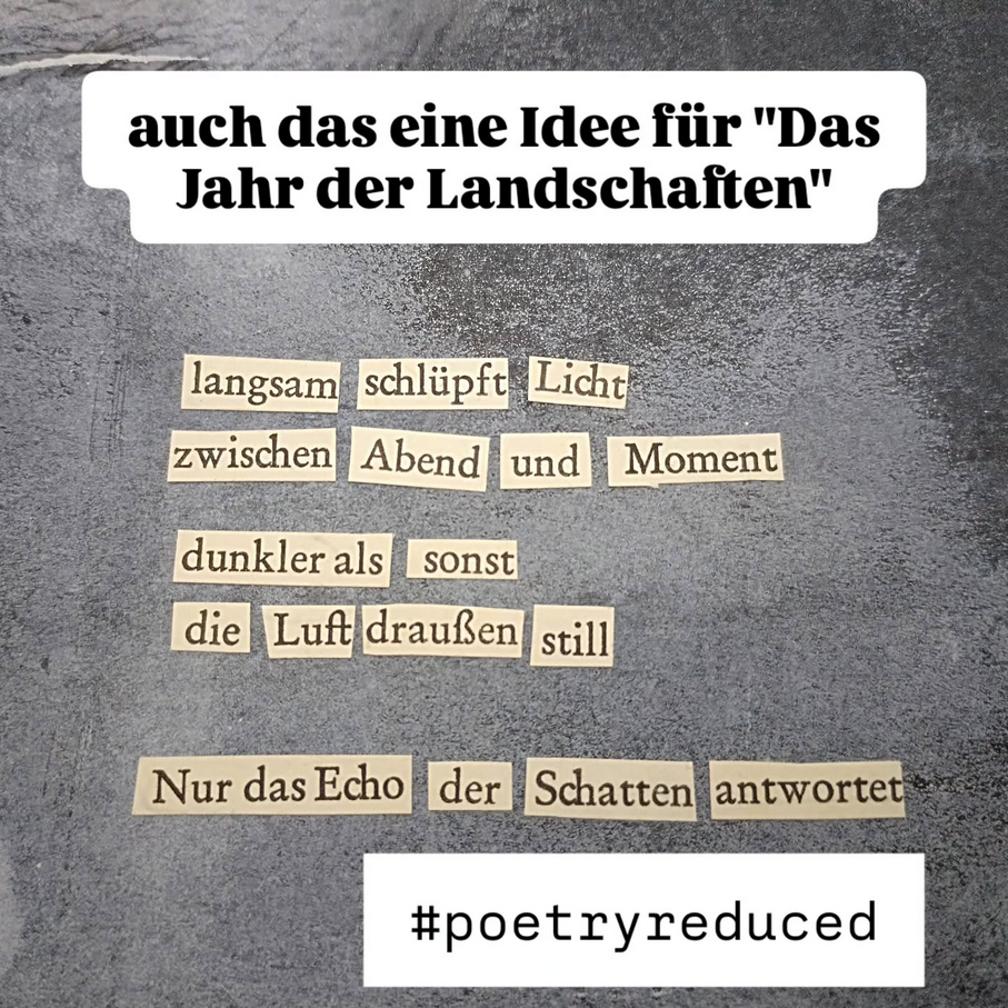 Gerne zeige ich hier übrigens noch zwei Anregungen für Das Jahr der Landschaften – meine Anregung zur poetry reduced habt ihr ja oben schon gesehen.