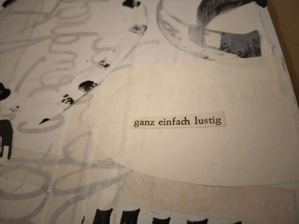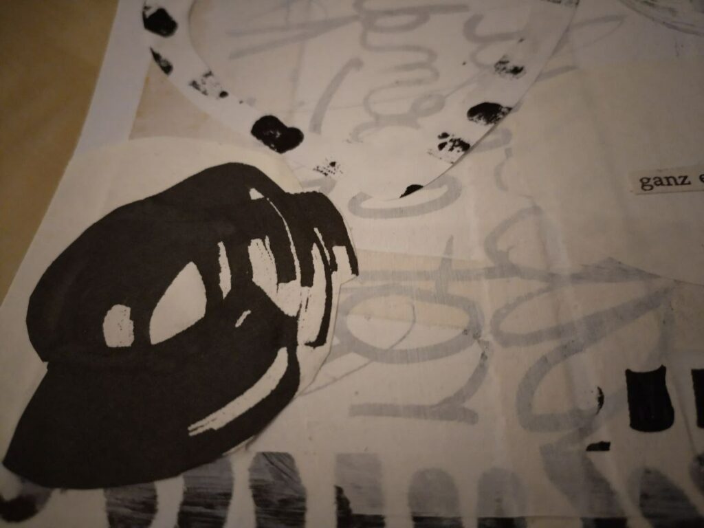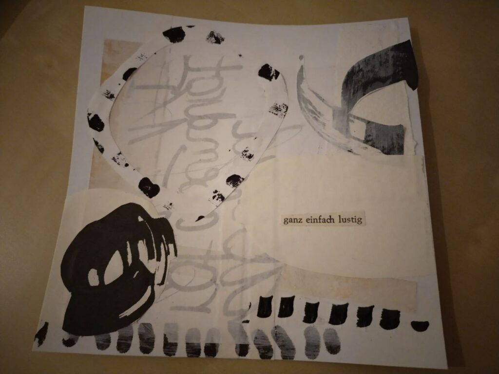 Ich starte also mit einer Collage in Weiß und wenig Grau, dafür mehr Schwarz.