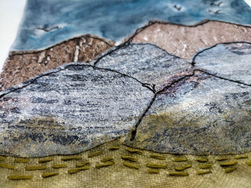 Welche Texturen oder Materialien erinnern an Gebirge, Stein oder Druck?