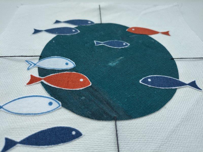Ich habe mich mit dem Gewicht und der Ruhe beschäftigt als erste der drei kreativen Fragen. Und dann bin ich auch zur Verankerung und dann auch zu Bojen gekommen. Und dann war ich bei der runden Form und wollte unbedingt kleine Fische von einem Reststück Stoff einarbeiten. Und so führte eines zum anderen.